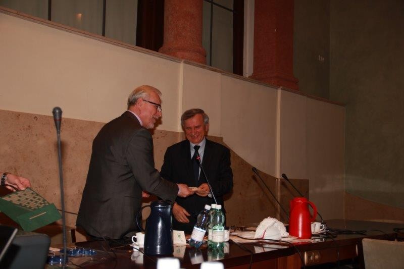 Ustępujący Prezes Zarządu Głównego PTT prof. dr hab. Władysłąw Kędzior wręczył wieloletnim, aktywnym działaczom Towarzystwa złote, srebrne i brązowe odznaki PTT.