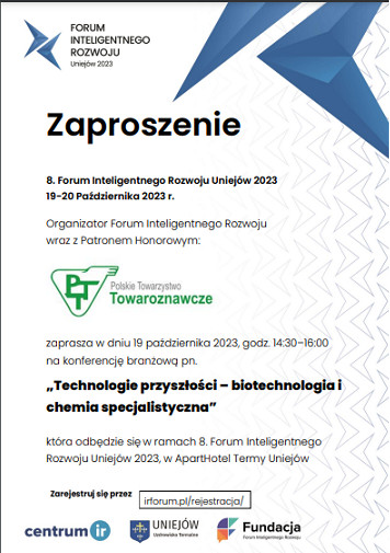 Szczególnie zachęcamy Państwa do udziału w konferencji branżowej pt. „Technologie przyszłości – biotechnologia i chemia specjalistyczna” zaplanowanej na 19.10.2023, godz. 14.30-16.00